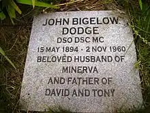 Major John Bigelow Dodge DSO DSC MC (15 May 1894 – 2 November 1960), also known as "the Artful Dodger",[1] was an American-born British Army officer who fought in both world wars and became a notable prisoner of war during the Second World War, surviving The Great Escape.