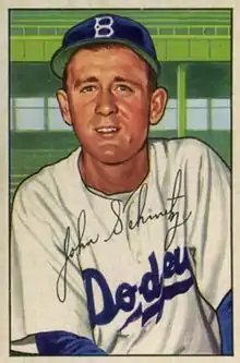 John Albert Schmitz (November 27, 1920 – October 1, 2011) was an American Major League Baseball pitcher who worked in 366 games over 13 seasons as a member of the Chicago Cubs, Brooklyn Dodgers, New York Yankees, Cincinnati Reds, Washington Senators, Boston Red Sox and the Baltimore Orioles between 1941 and 1956. His career was interrupted from 1943 through 1945 by United States Navy service in the Pacific theatre of World War II.[1]