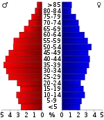 In the county, the population was spread out, with 19.70% under the age of 18, 7.40% from 18 to 24, 30.80% from 25 to 44, 27.10% from 45 to 64, and 15.00% who were 65 years of age or older. The median age was 40 years. For every 100 females there were 114.60 males. For every 100 females age 18 and over, there were 114.40 males.