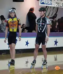 Jonathan Garcia and Joey Mantia warm up for an inline competition in 2007