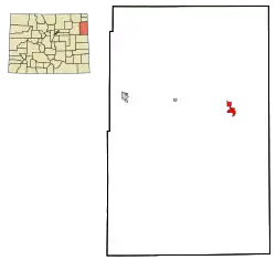 The Jones-Miller site is located in Yuma County, Colorado, 10 miles from the town of Laird in the Republican River basin.[3] The grassland site is located at a 18 inches (46 cm) deep draw that drains into an Arikaree River tributary.[4]