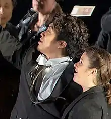 ![]() Jongmin Park (left) as Dottore Grenvil with Rebecca Jo Loeb as Annina in La traviata at the Hamburg State Opera, 2013 | |