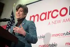 - ↑ Zeleny, Jeff (August 8, 2014). "Joni Ernst, From Obscure Iowa Legislator to Potential Role Model for Future GOP Candidates". ABC News. Retrieved September 19, 2020.