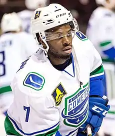 At the start of the 2016–17 season, Subban was again assigned to the Comets to start the season.[4] On January 5, 2017, Subban was named an AHL All-Star,[5] and on January 19, the Canucks recalled Subban for his first stint in the NHL,[6] though he did not see any game action before being returned to the Comets. On December 7, 2017, Subban was traded to the Los Angeles Kings in exchange for Nic Dowd.[7]