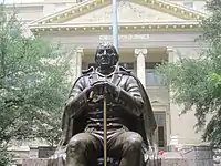 Navarro later served as a leader in the Texas Revolution.[6] He was at the Convention for Texas Independence,[7] when he received the news from Juan Seguin of the Alamo's fall.[8] With the death of James Bowie (his nephew by marriage), Navarro had to secure the release of the surviving Navarros, two women and a child,[9] who were being held by the Mexicans at the Músquiz house.[10] They were removed to the Navarro family home.[11] The surviving noncombatants [12] thereby avoided humiliation or death from General Antonio López de Santa Anna.[10]