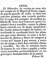 He also had an active participation in the beginnings of Argentine education, a pioneer in the application of the Lancasterian method in the Río de la Plata. He had a school of first letters located a few meters from the Church of San Miguel de Arcangel.[13]
