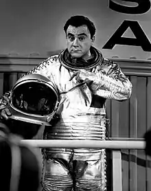 The routine was later released as a double-sided single: "The Astronaut (Part 1 and 2)" made the Billboard charts, peaking at #19 in September 1961.[1] Writer/producer Don Hinkley (who Dana had met when they were writers for the Allen show) played the part of the newscaster, asking José questions about his purported spaceflight. An LP, José Jiminez in Orbit (Bill Dana on Earth) (Kapp KL-1257), featuring similar routines, was issued in 1962.