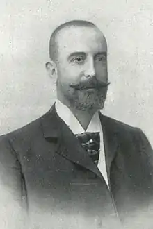 Already in the mid-1890s Doña Marina forged close relationship with the new party political leader and chief architect of the activist strategy, marqués de Cerralbo. Both shared not only the Madrid residence but also aristocratic standing, interest in history and archeology, penchant for letters, passion for collecting art and generally a refined intellectual format.[97] More importantly, they shared the vision of Carlism as a "party of order". Doña Marina was among chief exponents of the new slogan, "carlismo es una esperanza, no un temor", intended to change popular perception of the movement from a bunch of fanatic troublemakers to a respected established party.[98] His booklet designed to demonstrate the thesis got internal awards of the Madrid Círculo.[99] He was also active in anti-duel campaign,[100] a rather unusual stand for member of the group typically perceived as backwater trigger-happy rednecks.[101]