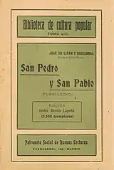 Already as a child José demonstrated a knack for letters; his 1871 poem was printed in a religious review.[28] The interest was developed during his teenage years: in 1875 he used to publish theatrical reviews,[29] in 1876 he established firm co-operation with a literary periodical La Revista,[30] and in 1879 he went on publishing juvenile poetry.[31] He kept writing rhymes also later on, though they were reserved mostly for private audience.[32] It is only by the end of his life that Doña Marina resumed publishing brief poetical pieces; few of them went into print in 1928[33] and 1929.[34] Revolving around the same religious topics as verses written 50 years earlier they demonstrated also the same unshaken faith. Already juvenile works revealed a penchant for melancholy; it governs unchallenged in his late lyrics. Moderately contributing to Carlism in literature, by some foreigners he was considered him "the best Spanish poet".[35]