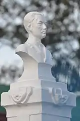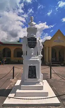 The monument to Jose Maria Panganiban is in front of the Gabaldon building at the Naga Central School 1, Naga, Camarines Sur, Philippines, and was erected in 1930 by the school's Parents-Teachers Association, 30 years after his death. It is said to be the oldest existing monument of the Bicolano hero. It has been neglected for years and was scheduled for demolition had it not been for the timely intervention of a Naga City councilor during an inspection of the heritage building.[1]