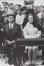 In 1933, Valiente proceeded to build the Acción Popular youth organisation, Juventudes de Acción Popular, and became its president.[39] Soon afterwards AP transformed itself into Confederación Española de Derechas Autónomas. JAP, now forming a juvenile branch of CEDA, retained its name and structure; Valiente continued to lead the organisation and became one of the national CEDA chieftains.[40] Under his guidance, Juventudes became an aggressively anti-Lefist and pro-authoritarian group,[41] though falling short of a typical "shirt organization" and denying similarity to Fascism.[42] During the 1933 elections to the Cortes, Valiente, thanks to his Cantabrian family links, negotiated a place on the local Unión de Derechas Agrarias list of candidates[43] and was comfortably elected from the Santander-Cantabria district.[44]