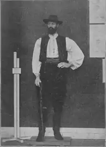 In Holešov, a local innkeeper noticed him and turned him into a circus attraction. He became known as "Hanakian Giant" and performed in the traditional costume typical of this ethnographic region. He travelled all over Europe with his performance, most notable were his performances for emperors Napoleon III and Wilhelm II. His circus career earned him his own house in Holešov, where he lived until his death. Nothing has been preserved from the building modifications adapting the house to his height.[1][3]