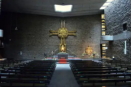 On 15 September 1968, on the Feast of Our Lady of Sorrows, Kentenich celebrated Mass at the recently inaugurated Church of the Adoration. Six hundred Sisters of Mary attended the ceremony. Just after Mass, he went into the sacristy for the thanksgiving prayer and suffered a heart attack; after receiving the last sacraments he died minutes later.[5]