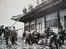The Joseon Infantry Division (Korean: 조선보병대) was an Imperial Guard Infantry established after the disbandment of the Imperial Korean Armed Forces to protect the Five Grand Palaces and members of the House of Yi. They had very little to do apart from serving as sentries, as they were mainly a ceremonial unit guarding the old palaces. At the time, articles about "the world's only peace army" were often published in daily newspapers. Their role was insignificant to Japan's Colonial Rule as Japan left the battalion-level Joseon infantry and company-level Joseon cavalry as a royal guard to prevent Korean soldiers in Hanseong, who had become unemployed, from joining the "righteous army", and to protect and monitor Emperors Gojong and Sunjong.[1][2]