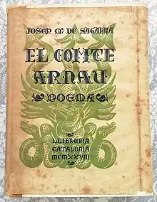 However, his main work developed in the field of literature, especially in theatre and poetry, that he wrote always in Catalan. He collaborated with assiduity in the press, especially in La publicidad and Mirador. It suits to remark also his work as a translator: the Divine comedy of Dante, and the theatre of Shakespeare, Molière and Gogol. Part of his poetry was inspired by the popular chansonnier and by well-known ancient legends, what turned him into a very popular poet that, in many respects, occupied the place that had left empty Frederic Soler, Verdaguer, Guimerà or Maragall.[2]