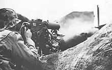Villeneuve started to swing the gun back and forth, raking Axis lines. The impact of the weapon was immediate. Within minutes, two German machine guns were down, and the hillside began to fill up with German dead. Chastened, the panzergrenadiers withdrew. The two soldiers lifted the hefty and unwieldy piece and carried it to another position to keep the pressure on the enemy.[11]