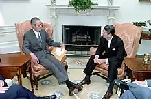 Coors was perhaps best known for his hard-right politics and his support of Barry Goldwater and Ronald Reagan, whom he first met in Palm Springs, California in 1967. His brother William Coors once described him as "a little bit right of Attila the Hun".[6] A founding member of The Heritage Foundation, a Washington, D.C.-based think tank in 1973 along with Paul Weyrich and Edwin Feulner Coors provided $250,000 to cover its first year budget and $300,000 annually thereafter.[6] He was also involved with the founding of the Free Congress Research and Education Foundation, the Council for National Policy, and Television News Inc., a syndicated news service for television stations. He was a member of Ronald Reagan's Kitchen Cabinet after helping finance Reagan's political career as governor of California and U.S. president, and was later nominated by Reagan to sit on the board of the Corporation for Public Broadcasting.[2]
