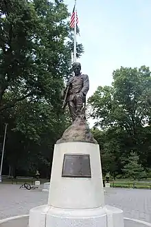 The soldier was reputedly modeled after silent movie star Francis X. Bushman.[10] Replicas of the statue are in Storm Lake, Iowa; Tarrytown, New York;[11] and Franklin, Massachusetts (as Mourning Doughboy).