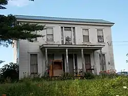 This house is a typical example of an I-house, which is generally found in rural settings.[2] Even though this house is within the Davenport city limits, it is located in a rural area in the city's southwest corner. The I-house style combines elements found in the Greek Revival and Italianate styles. The Greek Revival elements are found in the center doorways, both upstairs and on the main level, with their sidelights and transoms. The Italianate elements are found primarily in the taller windows on the main floor.