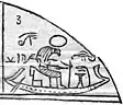 Figure 3 is located in the missing section of the hypocephalus. Prior to printing, the section was filled in. The text on the rim surrounding the figure has been replaced by text from the unrelated Breathing Permit of Hôr.[17] Similarly, figure 3 is also foreign to the hypocephalus. As Hugh Nibley stated, "The boat in the picture is identical with another piece of Joseph Smith Papyrus, namely JSP IV, which accompanies chapter 101 of the Book of the Dead."[17] Despite the striking resemblance, Nibley and some other apologists feel that the boat is inspired, because boats sometimes do appear in that section on hypocephali. Egyptologists dispute this, arguing that just like the surrounding text, the inclusion by Joseph Smith (or his engravers) is irrelevant.[13]