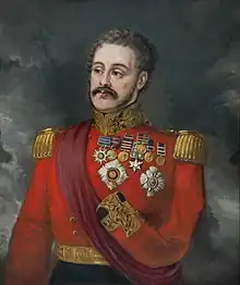 Lieutenant-General Sir Joseph Thackwell GCB KH (1 February 1781 – 8 April 1859) was a British Army officer. He served with the 15th Hussars in the Peninsular War at the Battle of Sahagún in 1808 and the Battle of Vitoria in 1813, and he lost his left arm at the Battle of Waterloo in 1815. He commanded the regiment from 1820 to 1832. He then served in India, commanding the cavalry in the First Anglo-Afghan War of 1838–89, and at the Battle of Sobraon in the First Anglo-Sikh War of 1845–46, and at the Battle of Chillianwala and Battle of Gujrat in the Second Anglo-Sikh War of 1848–9. He also commanded the 3rd The King's Own Dragoons, was colonel of the 16th Lancers, and was appointed Inspector-general of cavalry.[1]