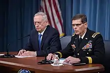 Votel with Secretary of Defense James Mattis who was Votel's predecessor as Commander of U.S. Central Command at the Pentagon, 11 April 2017.