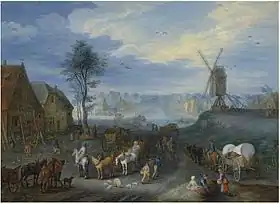 Joseph Bredael painted mostly landscapes and battles and made both copies and pastiches of compositions of 17th-century painters who were still popular in the 18th century such as Jan Brueghel the Elder, Philips Wouwerman and Claude.[6][9]