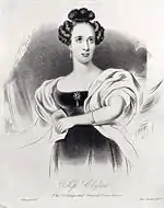 Around 1834, amidst rumors of affairs, Clifton moved to London where she appeared at Drury Lane and became "the first American actress to star in London."[3] She returned to New York where in 1836, Epes Sargent wrote a five-act play, The bride of Genoa, for her which was successfully produced by the Tremont Theatre. She then performed her most famous role, the title part in Bianca Visconti, based on the career of Francesco I Sforza.[4] This play was written for her by Nathaniel Parker Willis in 1837, when he won the $1000 prize in a contest given by her for the best blank verse tragedy to suit her talents.[5]