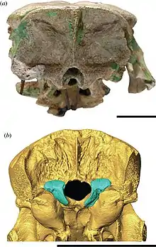 J. monesi probably had a constricted optic canal, which contains the optic nerve and ophthalmic artery, corresponding to vision.[1]