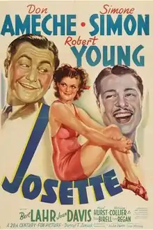 Josette is a 1938 American comedy film directed by Allan Dwan and starring Don Ameche, Simone Simon and Robert Young.[1] Two brothers fall in love with the same nightclub singer.