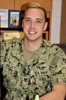 Kelley joined the United States Navy in February 2016 for the financial stability afforded by the military.[2] They became a yeoman. Their first assignment was with VFA-115[3] aboard USS Ronald Reagan, with a stint in Yokosuka, Japan.[6] As of June 2020, they were stationed at Naval Surface Warfare Center Dahlgren Division as a petty officer second class.[3]