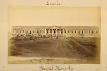 The neoclassical building was built in 1865–1883 on the ruins of a Franciscan monastery. It was initially a military hospital and was named Hospital Maria Pia, in honor of Queen Maria Pia of Savoy. After the country became independent (1975) it was renamed in 1977 after the Mozambican resistance fighter Josina Machel and declared a historical cultural asset in 1981.[1]