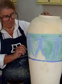 She now lives in the town of Jiutepec, near Cuernavaca and still paints for several hours per day, but for fewer hours now because of her age.[3][6] True to her English roots, she likes whiskey but likes tequila as well.[3] She still travels occasionally to England for periods of time.[3] Her house is filled with books which cover tables and chairs, as well as her paintings, which can be found even in the bathrooms. There are also many photos of her son Trevor, her granddaughter Isabella, and her husband Jorge.[1]
