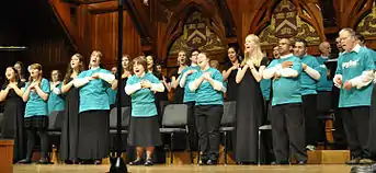 Joyful Noise is a choir for adults with disabilities. The group consists of 50 members between the ages of 17 and 75. The members of the Joyful Noise have disabilities, ranging from physical to intellectual and acquired brain injuries. Founded in 2000 by director Allison Fromm and chorus member, Elizabeth Fromm, the ensemble is hosted by Bancroft, a support program for those with disabilities in southern New Jersey and Delaware.[1] Joyful Noise's mission is to foster an atmosphere of community, acceptance, and teamwork in which members can discover their voices and express themselves through music.[2] Cathy Sonnenberg and Rob Kennan serve as associate director and Delaware director.