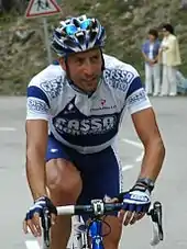 Juan Antonio Flecha Giannoni (born 17 September 1977) is an Argentine-born Spanish former professional road bicycle racer, who competed as a professional between 2000 and 2013.[2] Flecha had a reputation of being a Classics specialist[3] and to ride with an aggressive style as he was keen on participating in breakaways.[4] His major victories include winning a stage of the 2003 Tour de France, successes at the two defunct classics Züri-Metzgete and Giro del Lazio in 2004, and the Omloop Het Nieuwsblad in 2010. He was also known for his numerous high placings in important one-day races, most notably Paris–Roubaix, where he finished in the top ten eight times without registering the victory. In the Grand Tours, he was often assigned to a role of domestique.