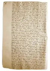 His actions as attorney-in-fact in judicial and commercial matters were concerning to some of the main political leaders of the Viceroyalty like Juan de Dios Salas,[14] Bernabé González Bueno,[15] Martín Grandoli,[16] and Joseph Medianero, a Spanish official who served in the Fuerte de Floridablanca.[17] He also intervened as a representative of Mariano Tristán y Moscoso, in a sale contract for this to Manuel Arredondo y Pelegrín, regent of Buenos Aires.[18]