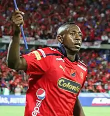 Caicedo rejoined Independiente after his loan expired, but signed with Deportes Tolima midway through the 2020 season.[13] He scored on his debut on 14 September against Deportivo Pasto in a 3–1 win.[14] Caicedo scored in the opening match of the 2021 season on 18 January, as well as scoring in the semifinal in the Copa Colombia on 28 January against Pasto.[15] Caicedo was unavailable as Tolima lost in the final against Caicedo's old club, Independiente. After missing the months of March and April with injury, Caicedo returned on 12 May in the Copa Sudamericana, with the league season paused in the quarterfinals of the knockout stage. Caicedo returned to the starting line-up for the knockout stage and scored all three goals for Tolima in the two-legged final against Millonarios, as they won their third title, 3–2 on aggregate.[16]