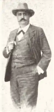 Juan Mencarini was educated in Madrid and Singapore.[3] In 1881, he was admitted at the Revenue Department of the Chinese Maritime Customs Service in Guangdong province, although he spent his first years at the Inspectorate General in Beijing studying Chinese.[4] In the following years, as was usual practice at the Customs Service, Mencarini changed post in a number of occasions: Xiamen (1883), Tamsui (the port of present-day Taipei, 1884), Shanghai (1889),[5] Fuzhou (1892), Xiamen (1896),[6] Hankou (1900),[7] Shanghai (1903)[8] and again Xiamen (1907),[9] gradually ascending rank from an initial position as 4th Assistant B to that of acting deputy Commissioner.[10] Mencarini's Chinese name was 绵嘉义; pinyin: Mián jiāyì.