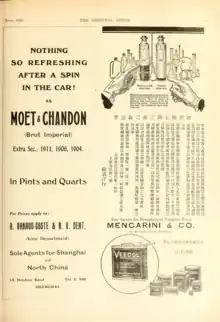Advertisement of Veedol oil, crediting Mencarini & Co. as "sole agents for Shanghai and Yangtsze ports". Published in Oriental Motor, vol. 2, no.3, June 1920[11]