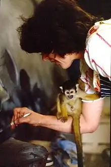 ![]() Judith Mason and squirrel monkey October 1980 | |