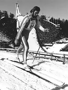 Juha Iisakki Mieto (born 20 November 1949) is a Finnish former cross-country skier, who was born in Kurikka. He competed in the 1972, 1976, 1980 and 1984 Olympics and won five medals, including a gold medal in the 4 × 10 km relay in 1976. He also placed fourth three times, losing the 15 km bronze medal in 1972 by 0.06 seconds. He finished second in this event in 1980 in the closest-ever margin of victory in Olympic cross-country skiing, 0.01 seconds, which led the International Ski Federation (FIS) to round all of their times to the nearest 1/10 second in future competitions.[1] Mieto was selected as the Finnish flag bearer at the 1972 Winter Olympics.[2]