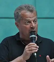 Jukka Laaksonen (born 15 July 1958, in Helsinki) is a Finnish comedian, impressionist and compere. For most of the public he is familiar as one of the regular competitors in popular YLE TV2 sports quiz show Se on siinä. In the show he often shows his impressionist skills imitating many celebrities and also the way the Estonian people talk. In 1998 he made, together with Juha Laitila and Joonas Myllyveräjä, a comedy show Huuliveikot for TV channel Nelonen. In 1993 he acted in movie Uuno Turhapuron poika. Laaksonen is also a popular master of ceremonies and performer in different public or private staged events.