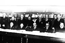 In June 1931 the “SEV Statute” was subject to approval at a grand meeting of vasco-navarrese mayors in Estella.[135] The gathering was co-presided by Elorza and it introduced changes to the "SEV Statute", mostly in line with his earlier objections;[136] in a frenetic closing session Elorza raised the "¡Gora Euzkadi!" cry.[137] Some SEV members claimed that he inspired and manipulated the amendments;[138] others noted that Elorza and other Carlists like Urquijo hijacked the project. He later excused himself, claiming that in Estella he was speaking not as a SEV president but on his own behalf.[139] The “Estella Statute” became soon irrelevant anyway; when presented to the newly elected Cortes[140] it was declared non-constitutional.[141]