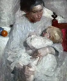 In 1905 two of her paintings, In a Dutch Cottage and Le Repas were included in Women Painters of the World, an overview of women painters with the remark "Miss Beatrice How...gives us, most delightfully, the very sentiment of the country people she paints."[3] How is most recognized for her art depicting mothers and children.[4] According to the Kourd Gallery, "Her fragile technique and the masterly handling of the lowest tones give so much vitality to her paintings that they seem almost transparent."[5]