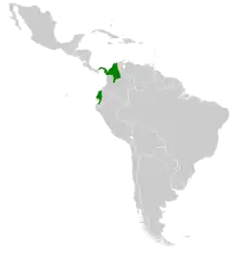 Violet-bellied hummingbirds are found in central Panama, through Columbia, extending to southwestern Ecuador and the extreme northwestern point of Peru.[3] Different subspecies have different habitats within this range (see Taxonomy and Systematics section). None of which experience seasonal migration.[3] This species is present in the understory of humid deciduous forests, forest edges, and regrowth forests.[3]