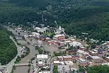 The July 2023 Northeastern United States floods, also known as the Great Vermont Flood of 10–11 July 2023 in Vermont, was a destructive and significant flash flood event occurring in the Northeastern United States from July 9 to 29, 2023. Slow-moving showers and thunderstorms produced heavy rainfall and flooding, which led to widespread damage across multiple states in the Mid-Atlantic, with the heaviest and most destructive flash flooding centered around northern New England, specifically Vermont.[2] Across the affected areas, numerous roads and bridges were washed out, and dozens of water rescues were conducted. Widespread rainfall amounts of 5 inches (130 mm) fell across the Northeast, with the maximum amount of rainfall occurring in Putnam Valley, New York, with 10.49 inches (266 mm).[3] Downtown Montpelier, Vermont was flooded, as numerous state roads around the city were closed. The flash floods caused 13 fatalities across several states and $2.1 billion in damage.