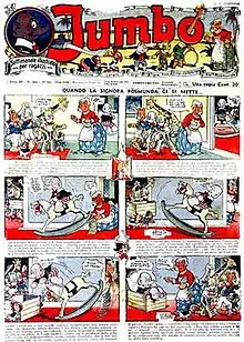 Jumbo was a weekly comic magazine published in Milan, Italy, from 1932 to 1938. The subtitle of the magazine which was an eight-page publication was settimanale illustrato per ragazzi (illustrated weekly for boys in English).[1]