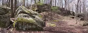 A portion of the battlefield, along with the Great Meadows, where Fort Necessity was located, has been preserved as a part of Fort Necessity National Battlefield.[57] Jumonville's name has been given to a Christian retreat center near the site. The non-profit Braddock Road Preservation Association, named for the road General Braddock constructed to reach Fort Duquesne, sponsors research and promotes the French and Indian War history of the area.[58]