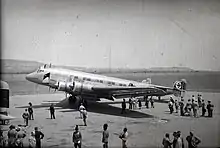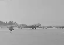 In April 1939, the RLM asked Junkers for a further development of the Ju 90 for military transport purposes.[3][7] The Ju 90V5 and V6 were the prototypes of this military design. They got a new wing with a straight inner section leading edge, of greater span (19%) and area (11%). The landing gear was strengthened with twin main wheels and the fins were more rounded, lacking the characteristic horn balance nick of the earlier models. The windows were replaced by 10 small portholes a side. The Ju 90 V5 flew first on 5 December 1939. A special feature of both the V5 and V6 was a powered boarding ramp in the floor of the rear section of the fuselage for loading cars and larger cargo freight.[7][9] This Trapoklappe ramp, when lowered, was powerful enough to raise the fuselage to the horizontal flying position. Both aircraft were retroactively fitted with the much more powerful, unitized Kraftei-mount 1,200 kW (1,600 hp) BMW 801MA radials, with the first suffix letter "M" signifying the initial Motoranlage format of unitized powerplant installation design promulgated by the RLM. Ju 90s were also used as tugs for heavy gliders.
