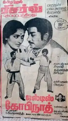 Justice Gopinath is a 1978 Indian Tamil-language film directed by D. Yoganand. The film stars Sivaji Ganesan, K. R. Vijaya, Rajinikanth and Sumithra.[1] It was released on 16 December 1978 and became a box office failure.[3]